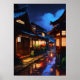 "Harmony in Rain: A Japanese Village's Midnight Poster