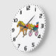 Add a touch of vintage charm to your space with this unique clock featuring a striking graphic of a racing horse and buggy. Perfect for equestrian enthusiasts, history buffs, or anyone who appreciates the elegance of horse-drawn speed, this clock combines functionality with timeless style. The detailed artwork captures the energy and motion of a bygone era, making it a standout piece for your home, office, or barn.