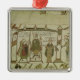 French School's Harold (c.1020-66) is offered the crown and the coronation of Harold, King of the English, detail from the Bayeux Tapestry (wool embroidery on linen) located at the Musee de la Tapisserie, Bayeux, France. The Harold (c.1020-66) is offered the crown and the coronation of Harold, King of the English, detail from the Bayeux Tapestry (wool embroidery on linen) was created around the 11th century.