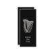 Black and white harp icon with Celtic knot decoration. Custom Text.