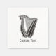 Black and white harp icon with Celtic knot decoration. Custom Text.