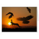 Harris Hawks. The Harris Hawk is the only bird of prey that hunts in family groups like wolves. Three Harris Hawks hunt down a jackrabbit. The fire of the setting sun behind them.