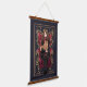 The polyester fabric displayed many wrinkles and several sharp creases throughout. At the bottom of the tapestry, I noticed a bulge in the fabric because it was not pulled tight enough before being connected to the wooden boards. It took me over an hour to spay water on the tapestry before putting it on an ironing board where I used a warm iron over a polyester cloth to remove the wrinkles and creases in the material. I was able to get out the wrinkles and creases that made that tapestry look as beautiful as its picture.