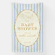 Celebrate your little wizard on the way with this charming Harry Potter Hedwig baby shower design. Featuring Hedwig gracefully soaring above an elegant oval frame, this sweet and magical layout is set against soft blue and white vertical stripes for a classic boy baby shower look. Delicate gold accents and subtle star details add a whimsical, enchanted touch inspired by the Wizarding World.