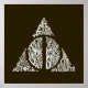 This illustrative graphic shows three highly powerful magical artefacts; the Elder Wand; the Resurrection Stone and the Cloak of Invisibility, which together form The Deathly Hallows and make the owner the Master of Death. Styled in a word cloud for a cool background and hailing from Harry Potter and the Deathly Hallows, this iconic symbol offers a great way to showcase your support for the Peverell brothers just like Gellert Grindelwald and Xenophilius Lovegood did!