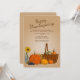 A beautiful, hand-drawn design that's perfect for any fall celebration. Pumpkins in and around a brown, wicker basket are joined by a sun flower poised in a bottle.