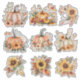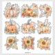 Celebrate the heart of fall with this 9-piece watercolor sticker collection, featuring pumpkins adorned with sunflowers, seasonal leaves, and floral accents in rich autumn hues. Each illustration captures the cosy spirit of harvest time—perfect for planners, greeting cards, and festive decor. With warm oranges, golden yellows, and rustic greens, these designs bring a gentle, nature-inspired touch to your creative projects. Ideal for Thanksgiving crafts, family scrapbooks, and anyone who loves fall florals.