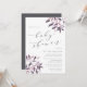 Rustic elegant baby shower invitation features soft grey lettering in chic block and italics with calligraphy accents, with sprays of watercolor fall foliage at the corners in muted shades of blush pink, lavender and burgundy.