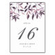 Elegant rustic table number cards feature a top border of watercolor fall leaves in muted shades of blush pink, lavender mauve and burgundy plum, with your table number, event date and additional custom text beneath. Design repeats on reverse side. Coordinates with our Harvest Blush invitation collection for chic fall or winter weddings.