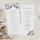 Our rustic chic wedding program features your ceremony details topped by a spray of watercolor foliage in muted shades of blush pink, dusty mauve and burgundy plum. Reverse side lists the members of your wedding party with easily editable text fields. Coordinates with our Harvest Blush wedding invitation collection. Use the template fields to add your ceremony and bridal party information, and then click "Customise It" to reposition elements if needed.