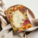 Celebrate your big day with this warm and festive harvest design. Featuring watercolor apples, grapes, dahlias, and fall foliage, this layout captures the richness of the season—perfect for a rustic autumn wedding. All text is fully customisable.