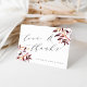 Chic autumn botanical thank you notes let you express your gratitude to your wedding guests in elegant style. Front features "love and thanks" in off-black calligraphy lettering accented with watercolor foliage in shades of burgundy, purple and golden plum. Personalise with your names along the bottom, and customise the inside with a custom pre-printed message and signature as well as a favourite wedding photo. Designed to coordinate with our Harvest Foliage wedding and event stationery collection.