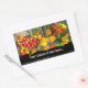 A colourful harvest time sticker with fruits and vegetables, flowers and leaves by a wooden fence, add the text of your choice.
