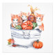 Autumn Harvest Art Design - Cute tabby orange kittens in a basket with corn, pumpkins and gourds.