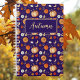 This design includes iconic Autumn watercolor images and gold colored celestial elements on a dark purple background. The pattern was made using Zazzle's tiling feature, therefore the tile may be adjusted by size or orientation, however, the background color is permanent. The boxes, text, and font may all be customized.