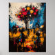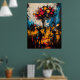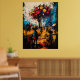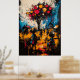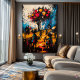 Immerse yourself in a dreamlike village where reality and imagination blend through contemporary expressionism. Vibrant bursts of red and yellow float like mystical fruit above the silhouetted figures, while chaotic brushstrokes bring energy and emotion to the surreal landscape. This artwork conveys a sense of nostalgia, wonder, and hidden meaning, perfect for lovers of abstract storytelling, symbolic modern art, and expressive textured compositions.