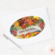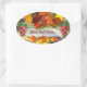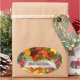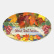 A colourful autumn sticker with grapes, apples and fall leaves.