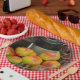 These paper plates feature a bountiful summer harvest of red and yellow striped heirloom tomatoes. Great for country get togethers!