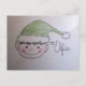 Cutest postcard ever. With his twinkly eyes, rosy cheeks and wide smile, wearing his holly green cap, this little elf is social media adorable!