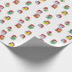 Wrap your Christmas presents in strange paper featuring smiling cartoon creatures in Christmas hats.