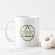 11 oz white mug with Hassler Instruments logo on both sides in green