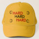 "Hard" hat in construction yellow. The word "Hard" in staggered text in red, black, red with 4 bolts in corners of red outlined sign.