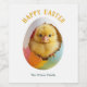 Add a festive touch to your Easter celebrations with these charming wine bottle labels, featuring a cute chick hatching out of a colourful egg. The bold 'Happy Easter' greeting in yellow capitals stands out at the top, while your personalised text below adds an individual touch. Perfect for gifting or serving at Easter gatherings, this wine label adds a playful, personalised element to your holiday cheer.