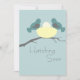 This double sided baby shower invitation is fully customisable. Featuring two birds waiting for their yellow egg to hatch on the front. On the back is the invitation details.