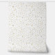 Hattie Confetti is a cute and cheery pattern featuring pale gold-yellow, neutral silver-grey, and earthy bronze-tan watercolor dots of varying shapes and sizes, arranged organically. It is a fun pattern for parties and events, or everyday childlike whimsy.