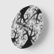 This awesome clock design was created from a fractal. It resembles a cluster of black trees with black trunks and twisted branches against a white moonlit night sky. It looks as though you are lying on the ground looking up at the sky from within a dense and spooky forest. Let your imagination run wild.