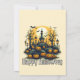 This Halloween party invitation features an illustration of a spooky cemetery. This spooktacular invitation can be easily edited to display where, when and a simple list of Halloween bash details you can adjust to make this card quite original.
