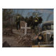 A rusty old car sits in the foreground of a graveyard scene with tombstones and eerie figures. The backdrop features a desolate landscape and an ominous, shadowy figure dressed in black beside a gravestone marked "John Martin."