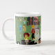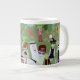 A fun cute retro style Halloween characters October art illustrated monsters, zombies, ghosts and pumpkin pal cartoon graveyard party cheeky funny jumbo giant coffee, tea, or cocoa mug. Get a fun Halloween illustration giant cup today.