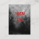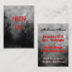 A custom business card sized event ticket or invitation with red gunge letters on a background of a spooky Halloween sky with misty trees along a dark haunted road, gothic ravens and a cloudy full moon. Click Customise It to change fonts, add text, even save your design for later.