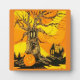 Table plaque and easel (5x5 inches) with vintage haunted Halloween tree scene.