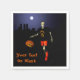 Not into trick-or-treating on Halloween? How 'bout a little pickup game of hoops? Features a skeleton dribbling a Jack O'Lantern in pace of a basketball. The skeleton is wearing a t-shirt emblazoned with the number "7" and team name "GHOULS." The moon hovers over a dark city skyline in the distance. Add your own text.