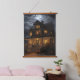 "Haunted Horizons" captures the essence of a chilling Halloween night as a mysterious, spooky haunted house looms in the foreground, engulfed by the ethereal glow of a full moon. This wall art transports you into a realm of eerie enchantment, where you can almost hear the whispered tales of restless spirits and feel the haunting presence in the air.