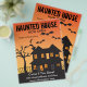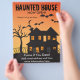 The perfect Halloween flyer for your Halloween event! A haunted house at sunset with dead tree is a spooky scene with flying bats! Edit the text to custom your personal Halloween flyer!