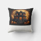 Haunted house with halloween pumpkins and bats under full moon, Happy Halloween