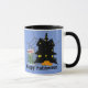 For Sale. Spooky, haunted house looking for some TLC. Coffee, tea and even hot cider will taste great in this Halloween mug. This seasonal design has a haunted house with a for sale sign, in the front yard. In the background there's a grey spider web. The same design is on both sides of the mug.