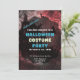 Prepare your guests for a night of spine-tingling fun with this modern and playful Halloween costume party invitation. The front design showcases a super creepy haunted house, complete with eerie ghosts floating in the windows and mischievous jack-o' lanterns lighting the path. Bats swoop through the air, adding an extra layer of spooky excitement. The haunting scene is brought to life with a striking black, grey, and red colour palette, creating a dramatic and chilling atmosphere.