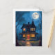 Haunted House Halloween Hand-Painted Holiday Postcard