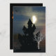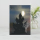 A spooky scene for Halloween, this HAUNTED HOUSE design is a combination photograph and cutout shapes courtesy of Obsidian Dawn. A dark blue sky, highlight by a grey clouds, and a bright ghostly shape shine down on a black haunted house, a bare white tree and an orange RIP gravestone. Matching postage available: