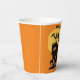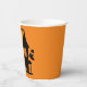 Haunted House Halloween party paper cup! Orange and black with a haunted house, ghost in haunted house and flying around, and a flying witch on broomstick!