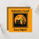 Haunted House Halloween Party Invitation. Cool invitation featuring a haunted house. Spooky trees, ghosts, bats, a cross and behind them the full moon in orange.