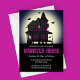 Our Haunted House Halloween Party invitations are the perfect way to invite your friends and family members to your spooky haunted house. These invitations feature an old Victorian styled house with ghosts floating in and out of the windows, pairs of red monster eyes watching for your guests arrival and bats flying in the moonlight of the full moon.