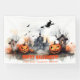 Halloween Banner featuring a spooky Haunted House, complete with a classic pumpkin Jack O'Lantern, and a wicked witch. This Halloween banner showcases a haunted house scene, alongside a carved pumpkin - also known as a Jack O'Lantern - and the figure of a witch.