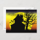 This old and rickety Haunted House stands tall with the almost-bare tree next to it.. Bats fly close to the house as the sun sets behind it. Is that a cloud passing overby to give it more of a creepy look or is that smoke coming out of the chimney? Overgrown grass and weeds line the bottom of the house and tree. A great piece to get you into the Halloween spirit with the sun setting brightening the sky with Red, Orange and Yellow colours in the background giving it a feel of Halloween. Send this postcard and get a smile from those who see it.