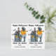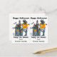 This cute Halloween postcard is designed to be easily cut into two cards. The image is of a spooky haunted house with bats flying about. A witch rides her broom in front of a yellow full moon. The black text above says "Happy Halloween", and below "Enjoy the Haunt" with your signature. Perfect for elementary students to give to their friends at their school Halloween party, and economical, too! And teachers can also customise it to give out to students.