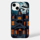 Spooky haunted house with bats circling above, a perfect Halloween design for shirts and stickers.